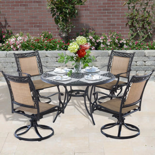 5-Piece Cast Aluminum Patio Dining Set with Swivel Chairs & Round Table – Brown