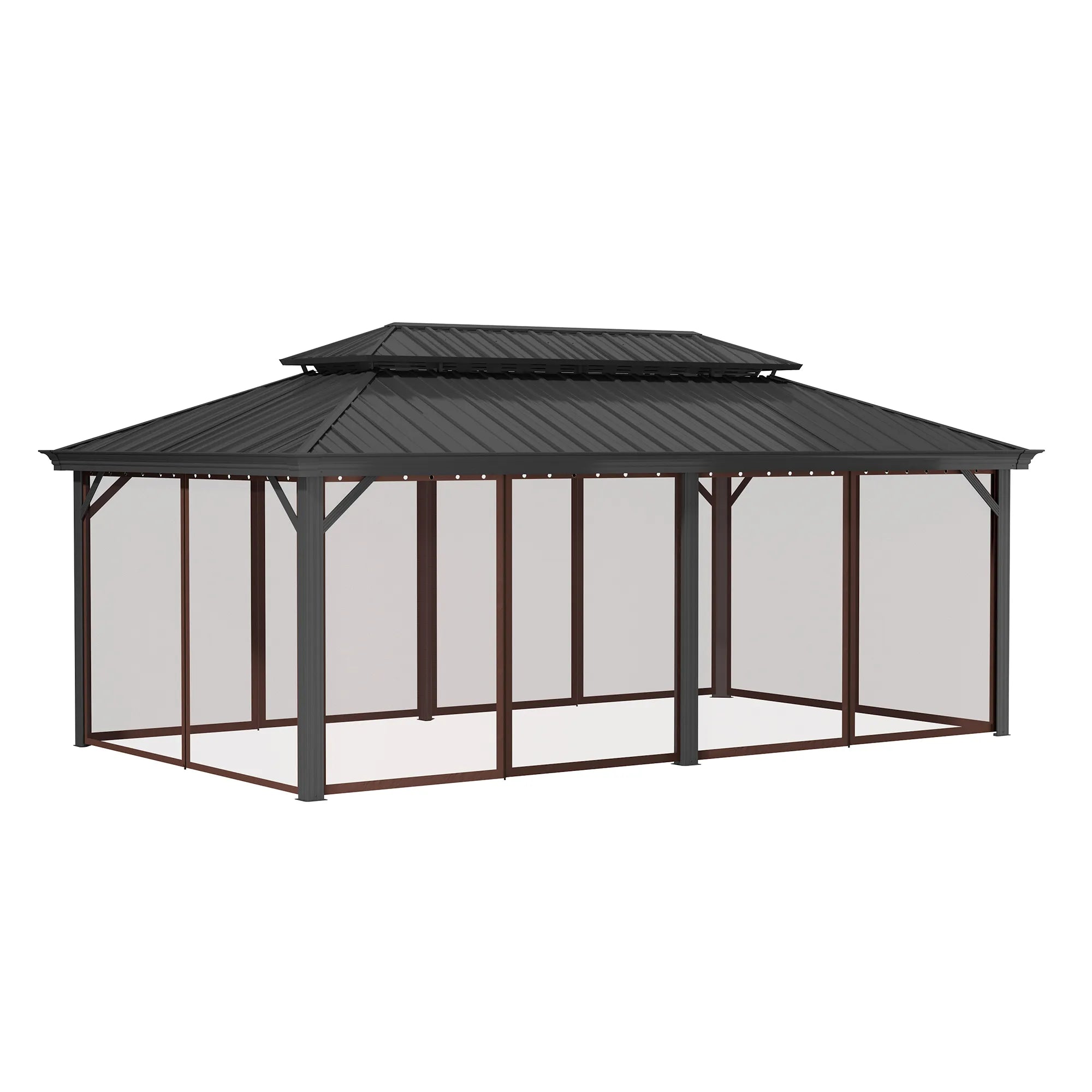 12x20 ft Double Roof Aluminum Gazebo with Netting – Hard Top Patio Shelter