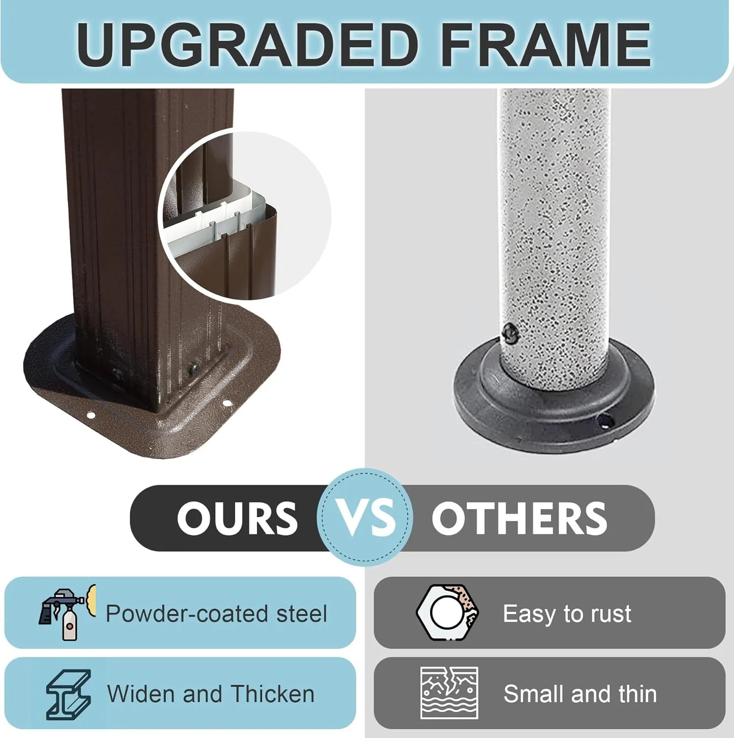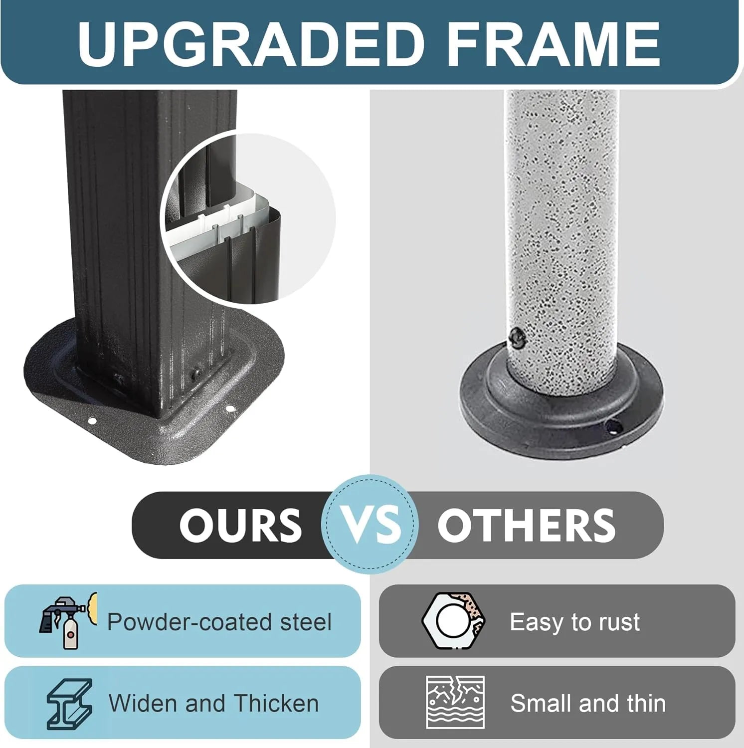 • Sturdy Metal Frame- This hardtop gazebo is supported by a robust all-steel frame, reinforced with triangular braces for maximum stability and strength. With pre-drilled bases for secure anchoring on solid surfaces like concrete, ensuring reliability in windy or rainy conditions.