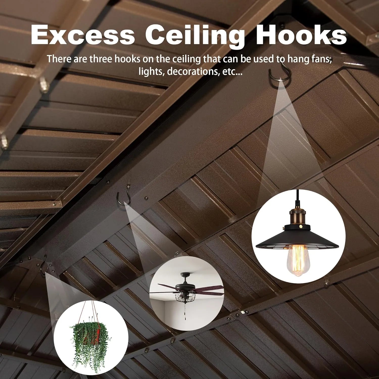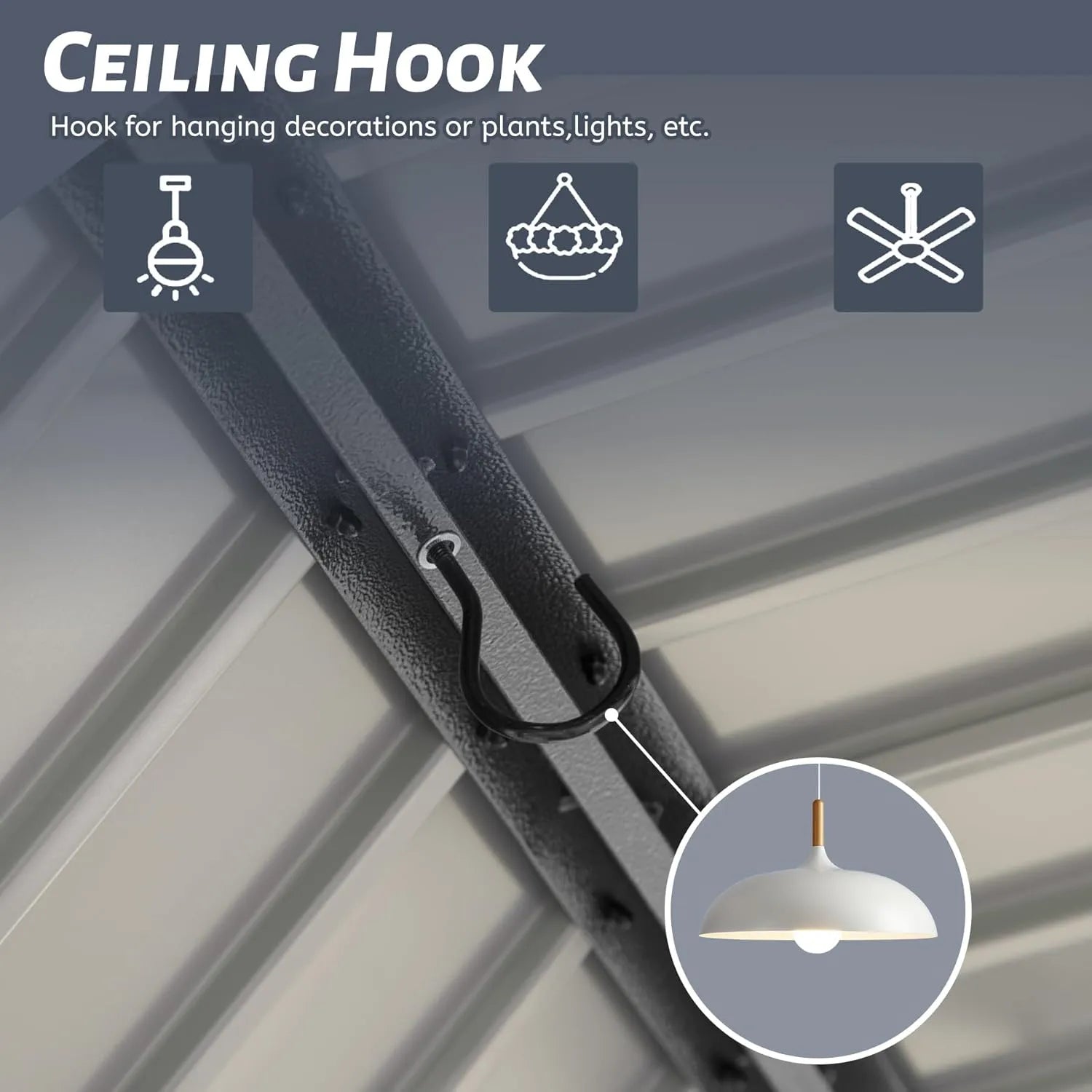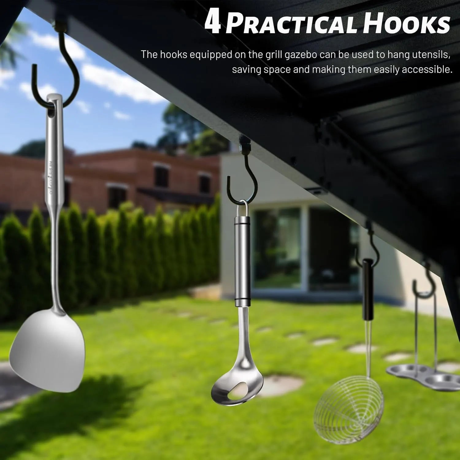 • Functional Ceiling Hooks- The 6.5'x12' gazebo includes four ceiling hooks perfect for hanging cooking utensils, lights, or decorations, maintaining a tidy area and ensuring your most-used items are always accessible while using this grill gazebo.