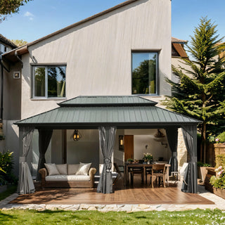 13X11 FT Patio Gable Roof Hardtop Gazebo Aluminium Frame Galvanized Steel Top