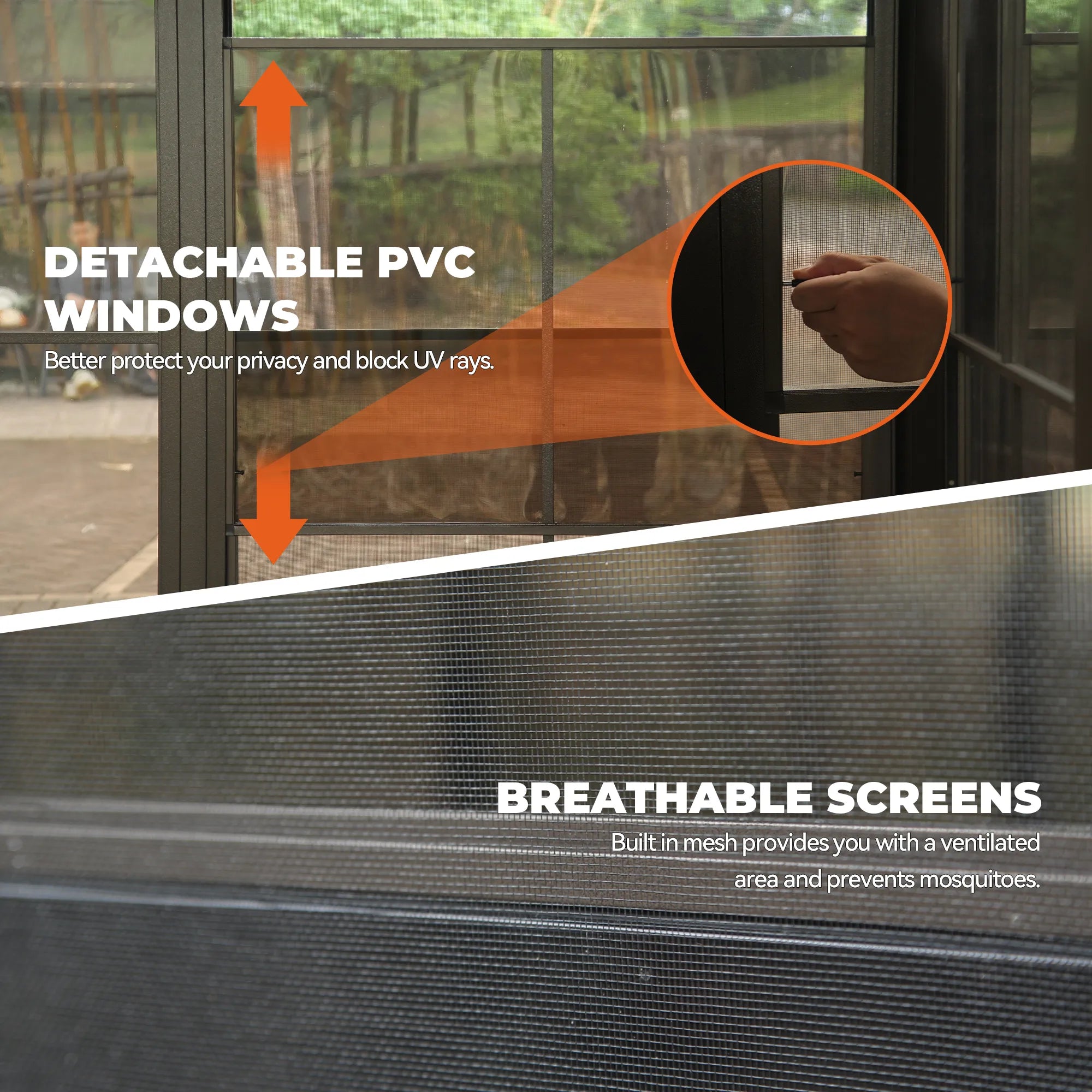 【Detachable PVC Screen】Powder-coated thick aluminum frame with high-intensity detachable PVC screen wall, you can adjust the position of the window and mesh up or down as per your ppreference.