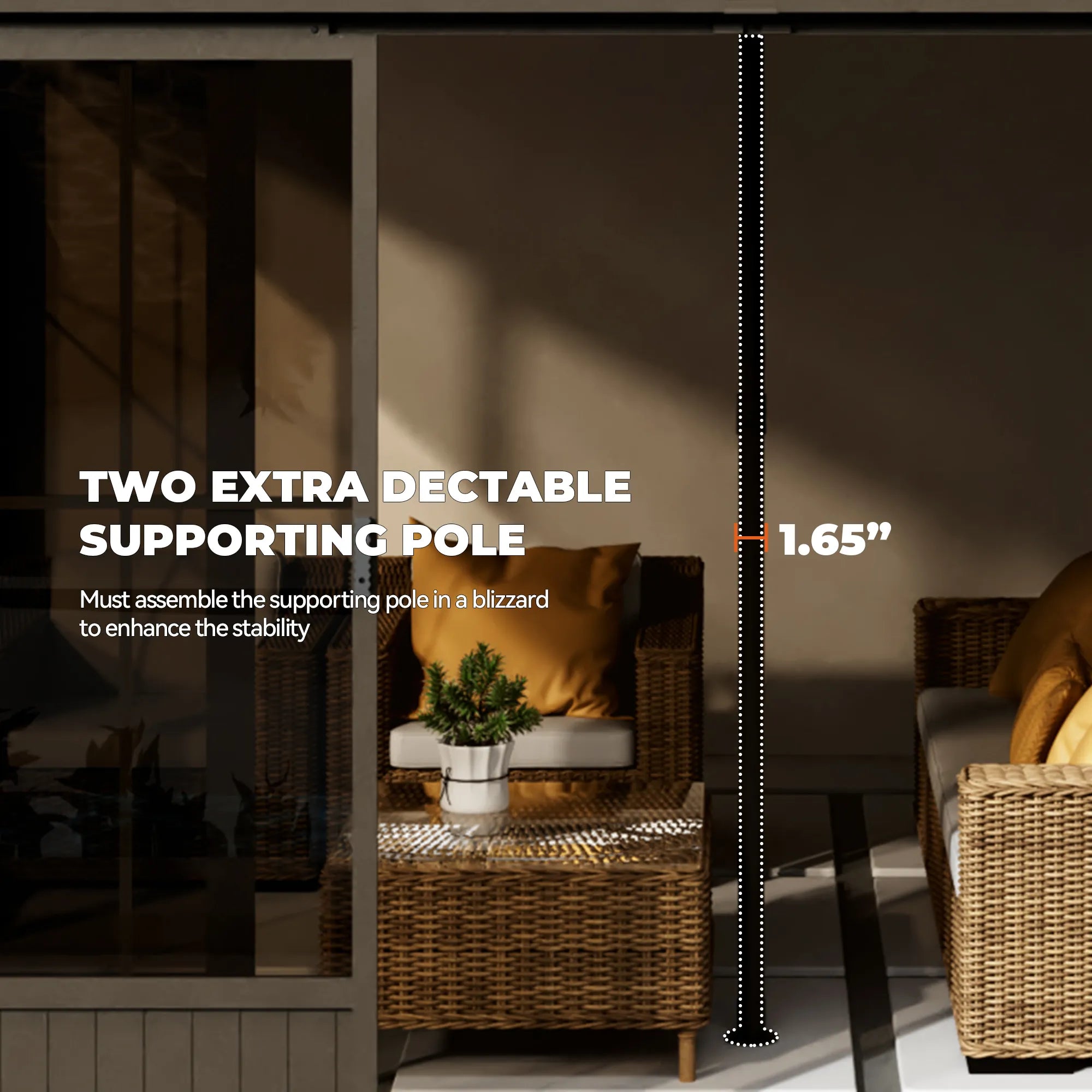 【Extra Support Column】Addition of two detachable columns increases the stability and firmness for snow weather. The column diameter is Φ1.65", thicker and safer than the others. In daily life, you can put them away.