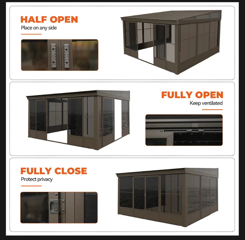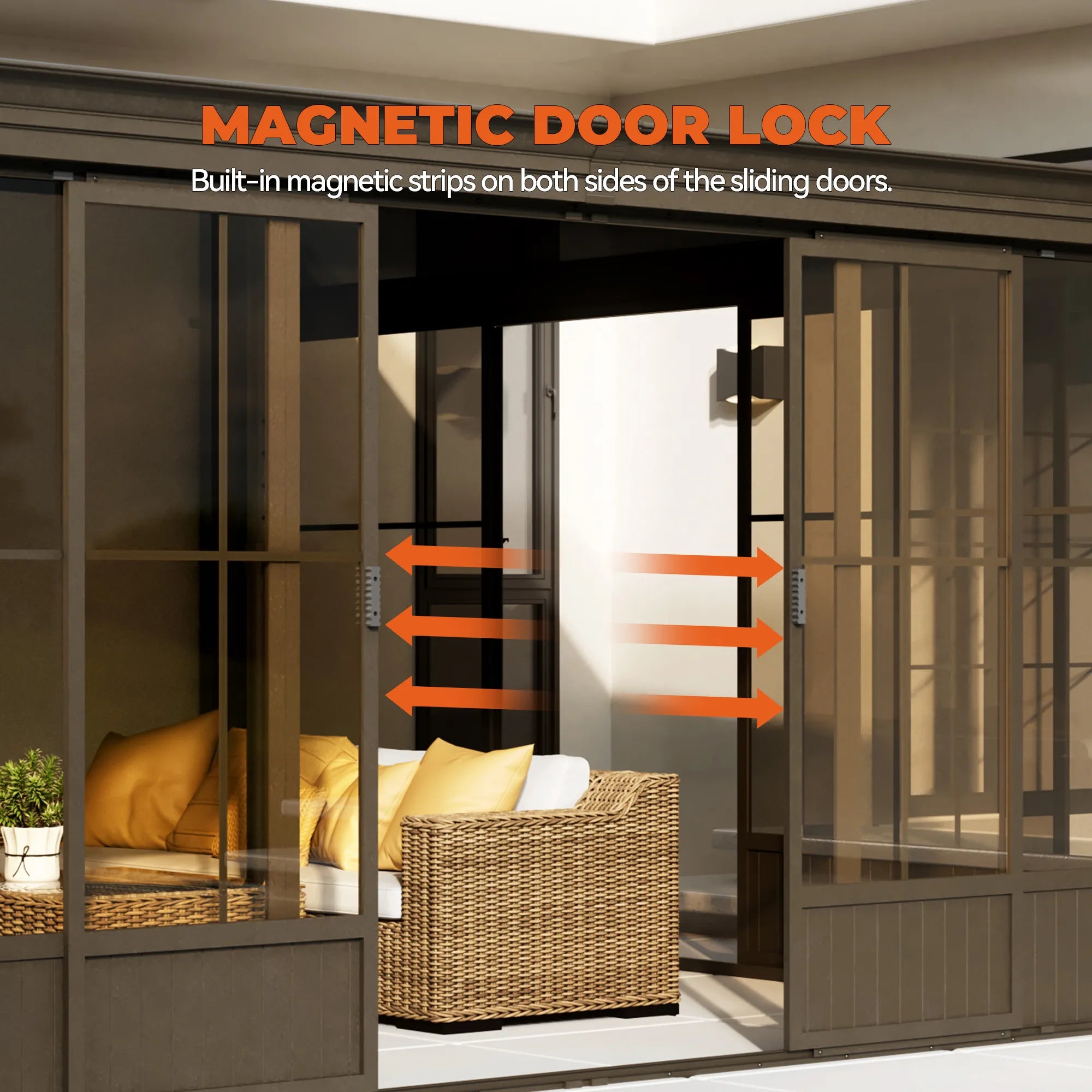 【Double Lockable Sliding Door】The solarium  is equipped with sliding doors on both the front and side, providing you with more options for free entry and exit. Lockable double entrance achieves both private and open rooms.