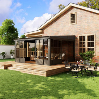 Aluminum Lean to Gazebo Sun Room with 2 Lockable Sliding Doors for Garden Patio Deck
