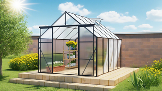 Wall Mounted Sunroom with Sloped Polycarbonate Roof & Sliding Doors